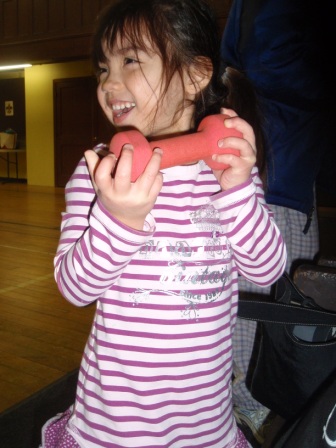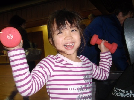 Aurora to go home with him! Here she experiments with 3 pound weights.
