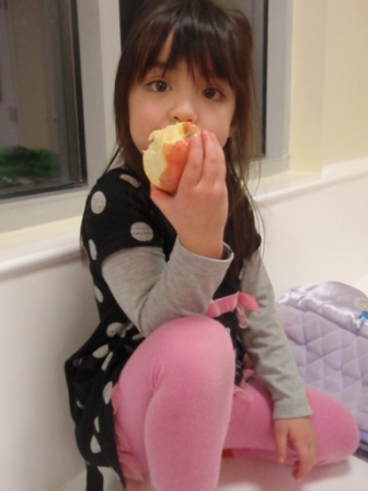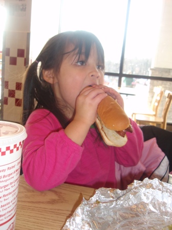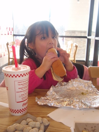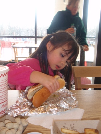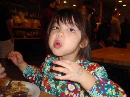 January 29, 2012: After seeing "Flat Stanley" (and having a cookie in the lobby), Aurora is hungry for