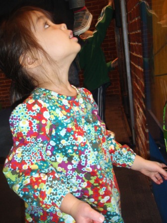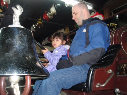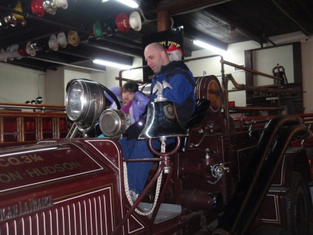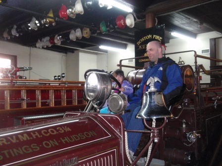 Special treat! The Boston Fire Museum is open today! Aurora gets a brief lesson on firefighting