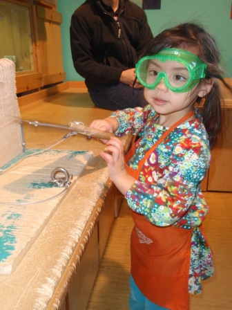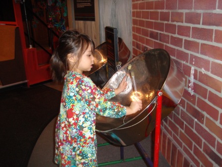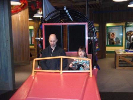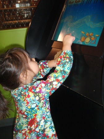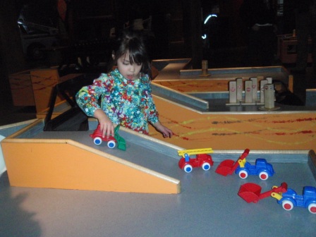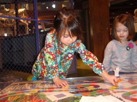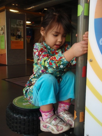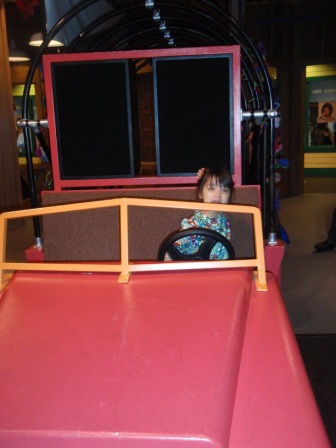 Back at the Children's Museum. Here she is in the "kindergarten classroom."