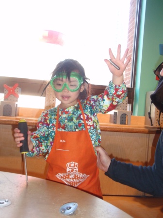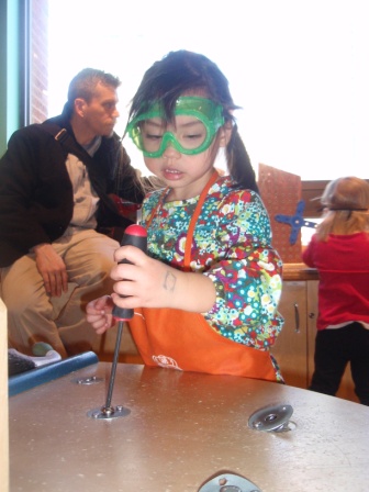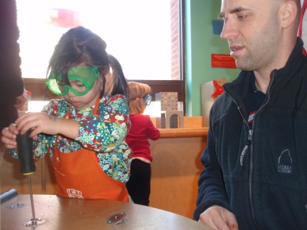 Jon's favorite room - the workshop! He is training Aurora to be his handyman helper. Kathy