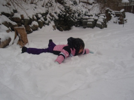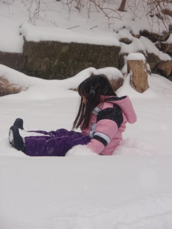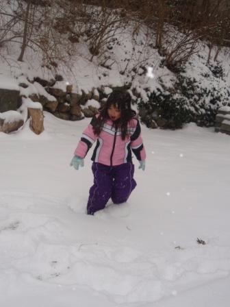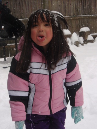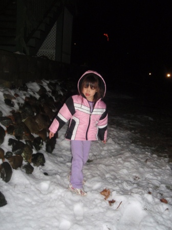 January 17, 2012: A little bit of snow finally fell! Aurora cannot wait to make a