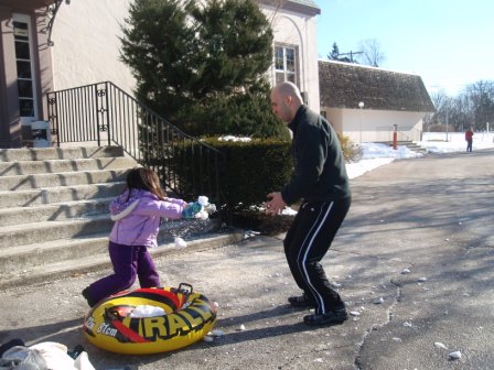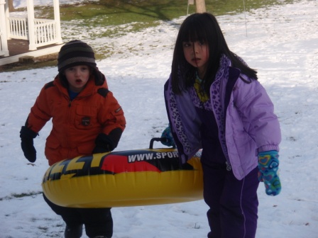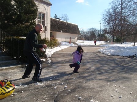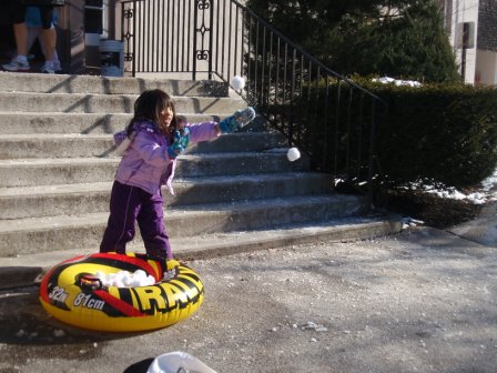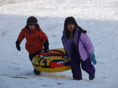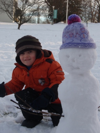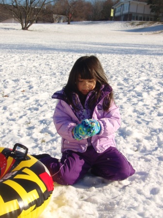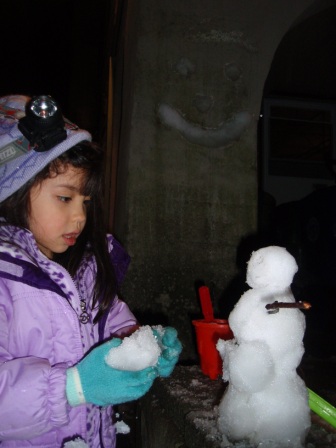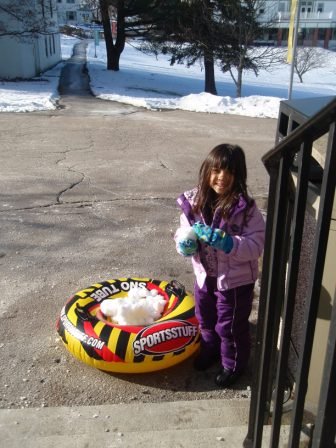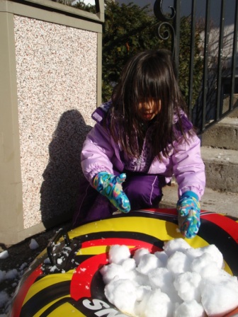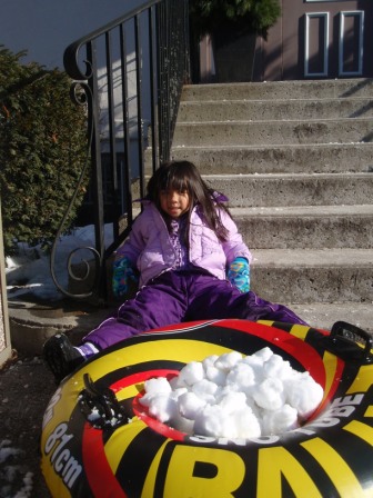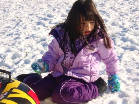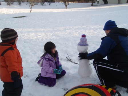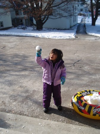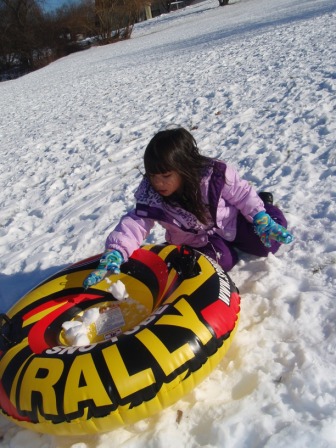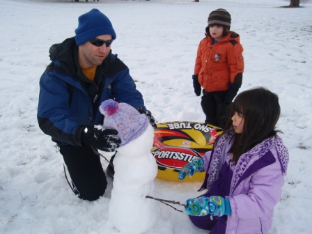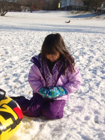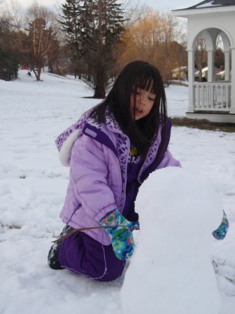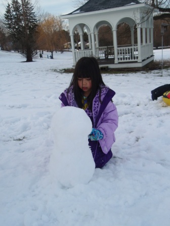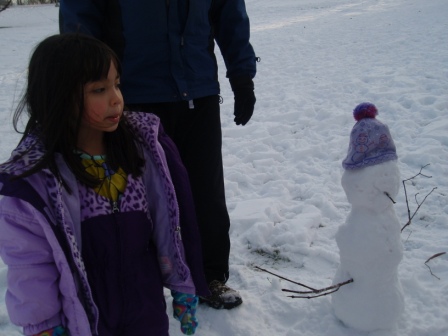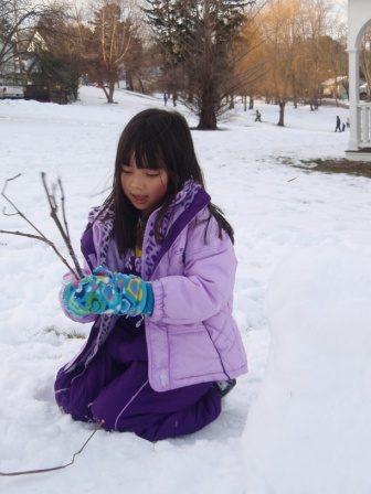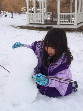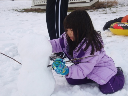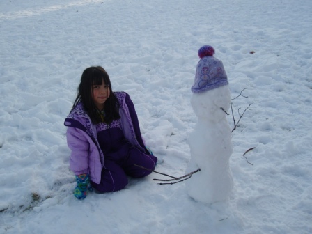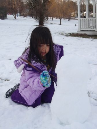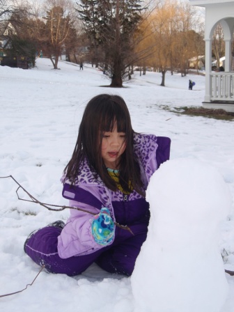 Snowy days meant Aurora got to take advantage of sledding at Walnut Hill and making lots of snow people.