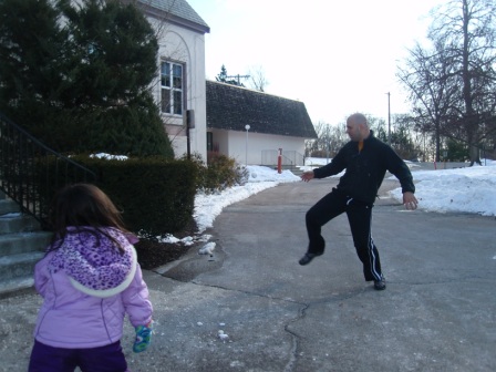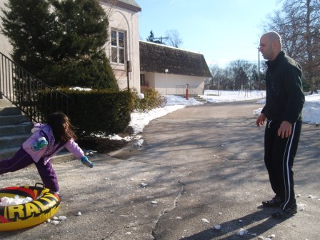 January 5, 2013: Saturday at Walnut Hill. Aurora got to play in the snow with Baba when Mama was in her TRX class, then