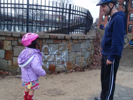 January 13, 2013: An unseasonable warm day means the chance to go for a family bike ride. We hit the bike trail