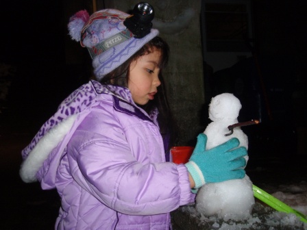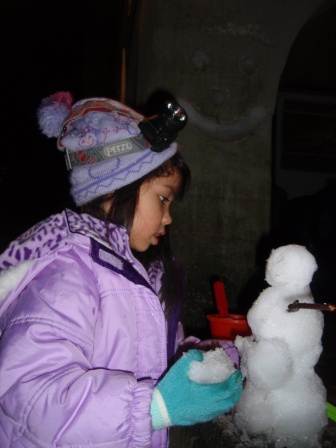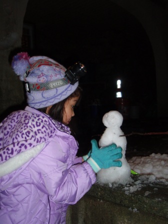 January 16, 2013: It might be dark outside, but with the flood lights and a head lamp, Aurora can still play in the snow