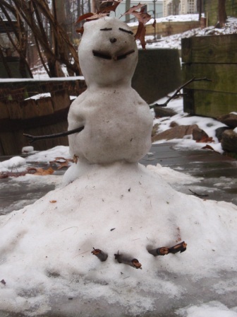 January 30, 2013: Kathy wakes up and discovers that another snowman has appeared on the back deck! This one is wearing a