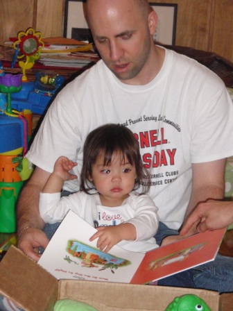 July 2, 2009: Aurora digs into a box full of goodies from the Zaleskys (Grandma, Anthony, and Chris and Lisa)