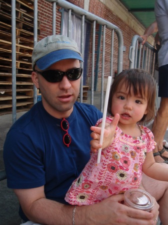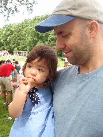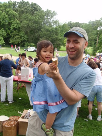 At the Newton Kids' Festivities, we all got free Cabot's Ice Cream for breakfast. Aurora really likes her