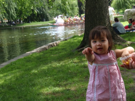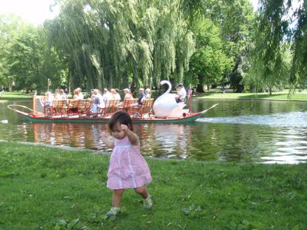 July 5, 2009: We took advantage of a sunny morning to make a quick trip to the Public Garden and take Aurora on
