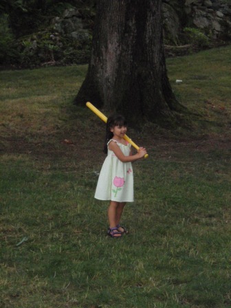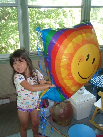 July 5, 2012: Aurora shows off the big balloon we got for her party in June.