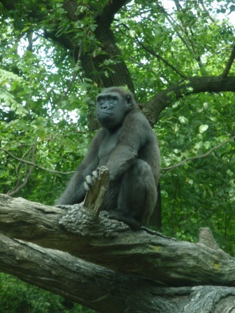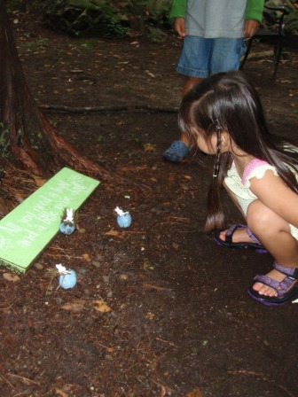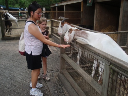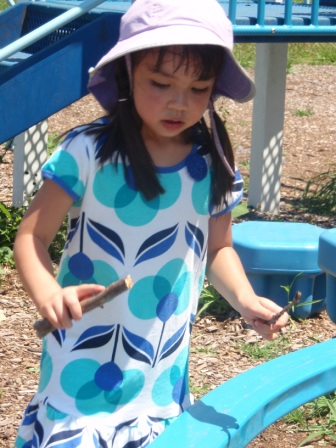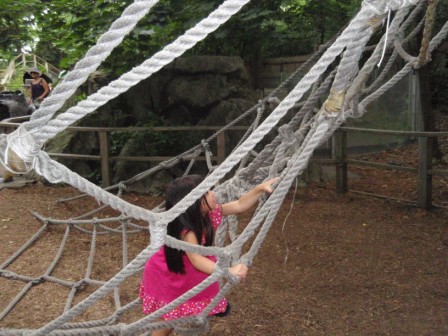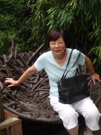 Wai Po tries out a bird's nest in the Children's Zoo.