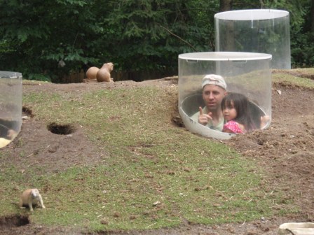 Aurora and Jon look at the prairie dogs like prairie dogs.