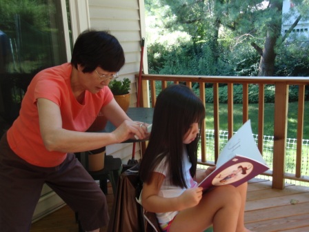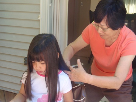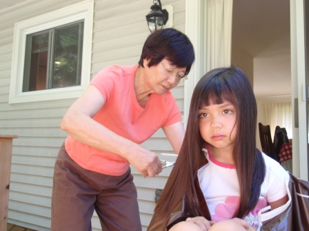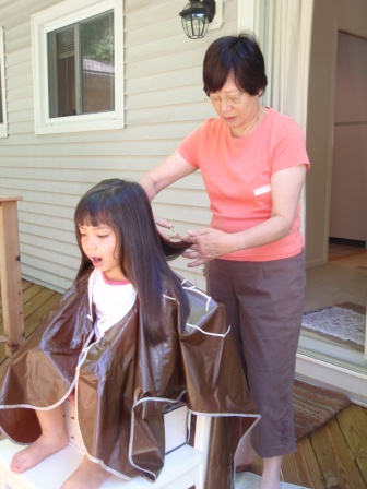 July 8, 2012: Aurora gets a haircut the way Kathy did for the first half of her life.