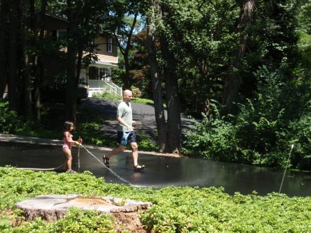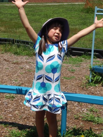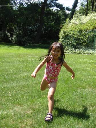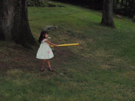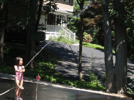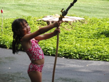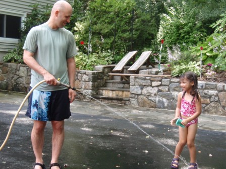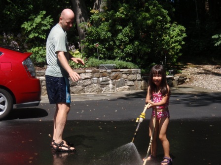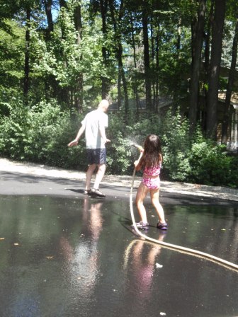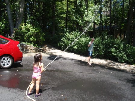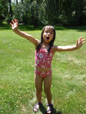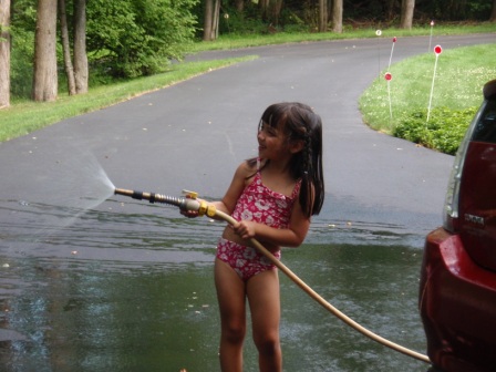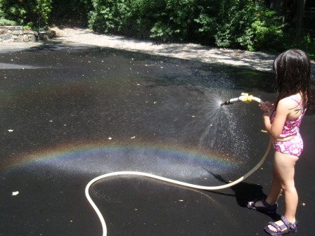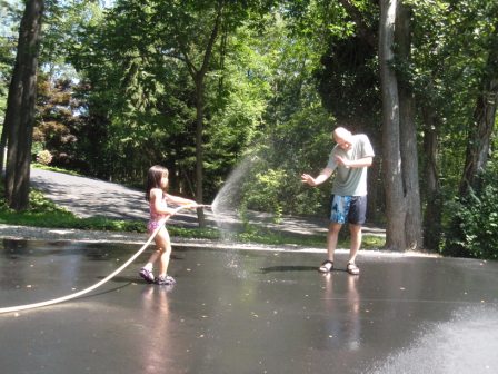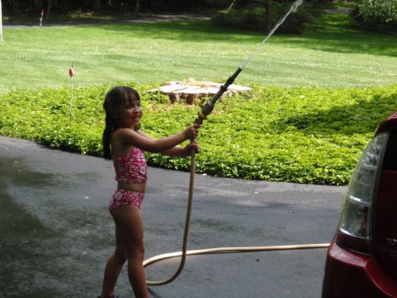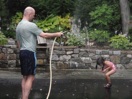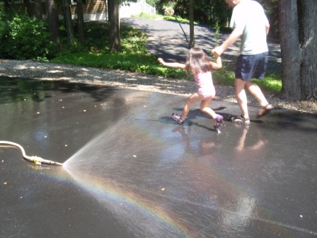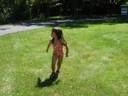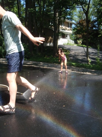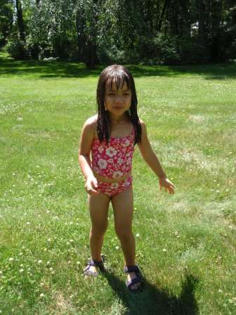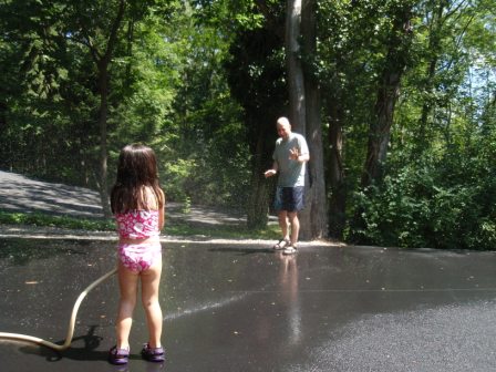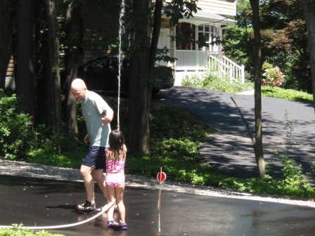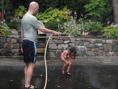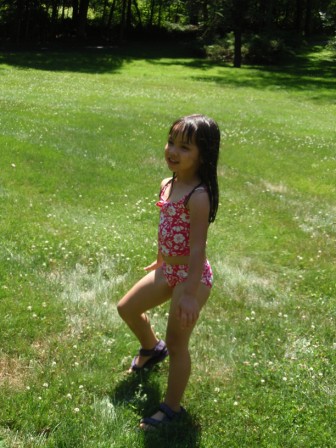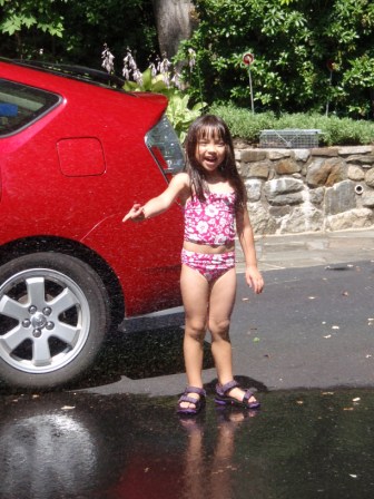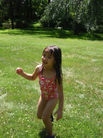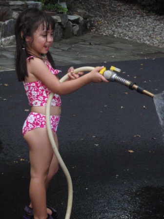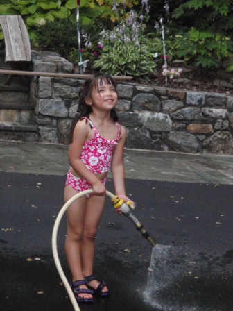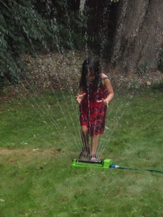 July 14, 2012: Aurora begins the day with some sprinkler time. In her dress.