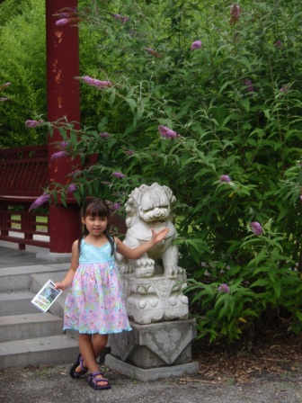 they go for a short walk in Lasdon Park to check out the Chinese garden.