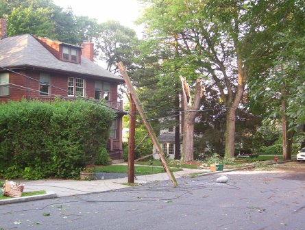 Further down the street, more tree branches took out another set of power lines. We watched the tree and NStar people work