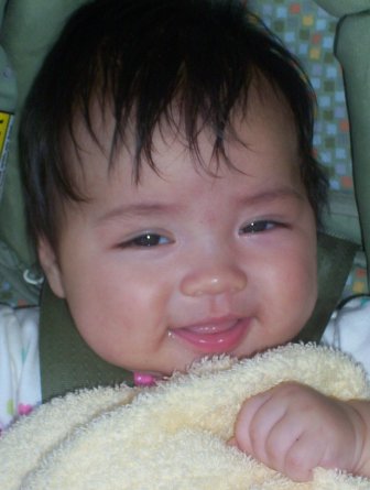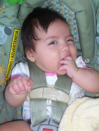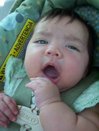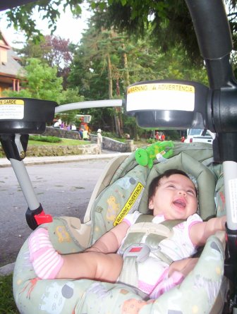 June 3: Aurora is all smiles in the morning, but then is a bit surprised to find herself in the carseat!
