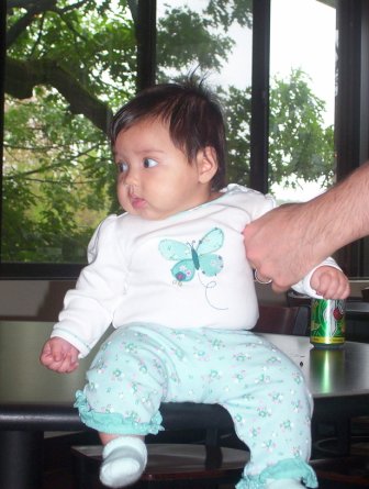 Happy to be back at home...notice how Aurora's top no longer matches her pants. Can you guess what happened after lunch?