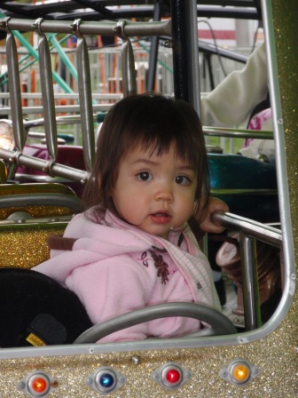 Aurora on her first carnival ride. Baba went along to make sure she didn't get too scared.