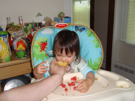May 30, 2009: We grilled some food for dinner, and Aurora tried corn on the cob for the first time. Do you think she liked it?