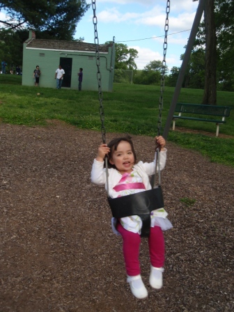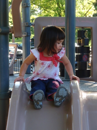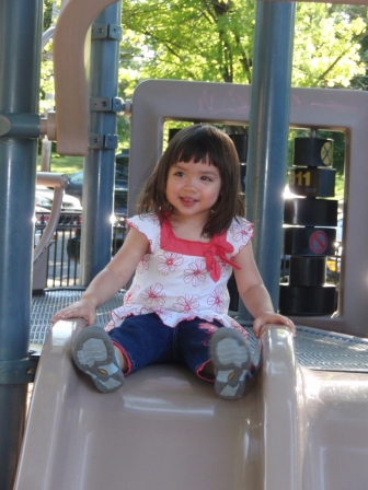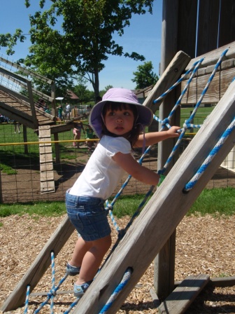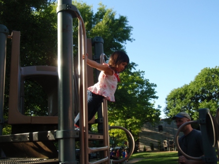 even learning how to climb up things designed for older children. Jon takes Aurora to the playground almost