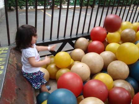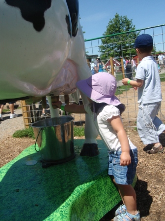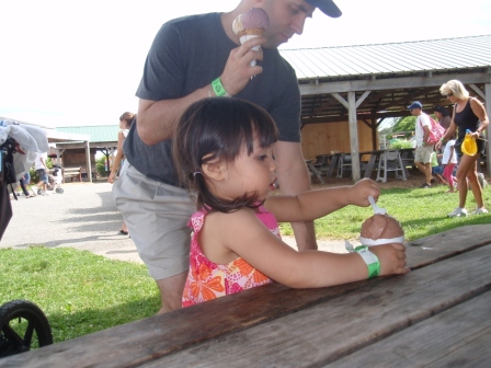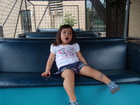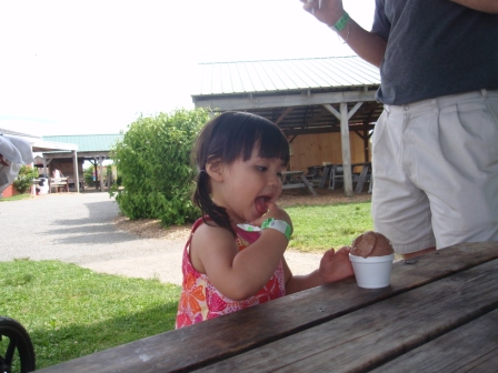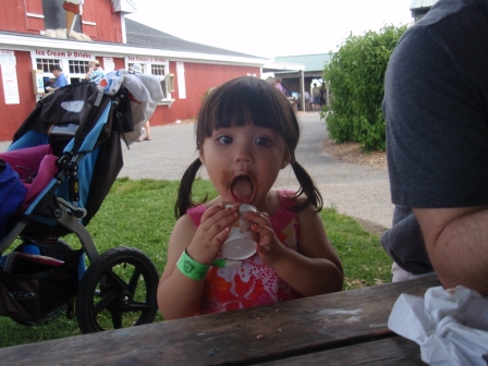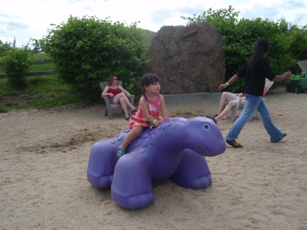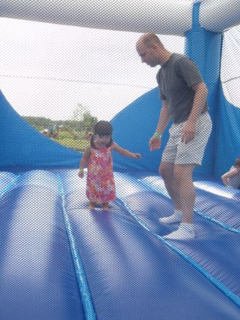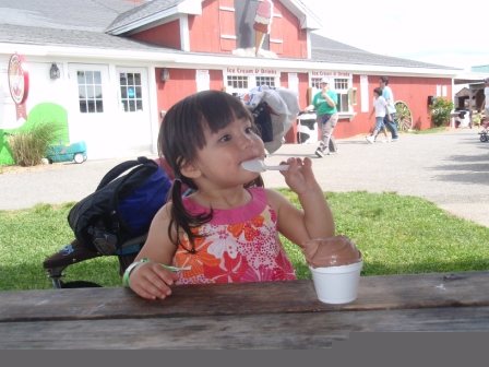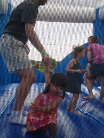 After filling up with ice cream, Aurora wanted to try out the bouncy cow. Again, she