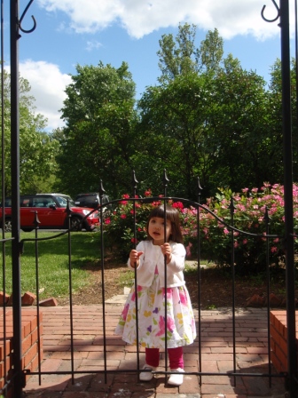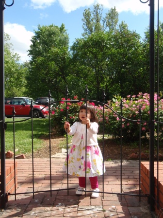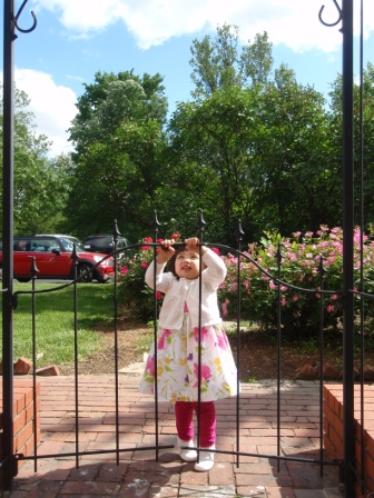 At the reception site, the biggest attraction was this gate. Aurora was very proud of herself once she