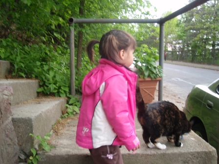 May 11, 2010: The new neighbors have two outdoor cats, which Aurora loves to watch. She even
