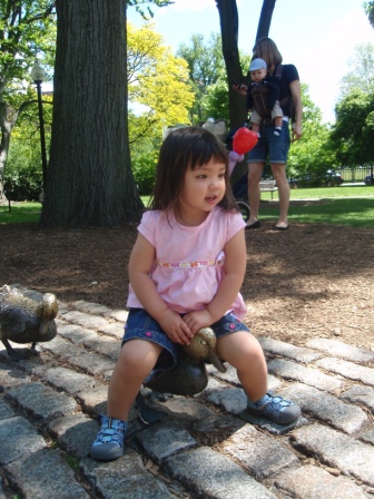 May 16, 2010: A trip to the Public Garden means the Make Way for Ducklings sculpture, a Swan Boat