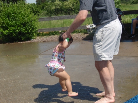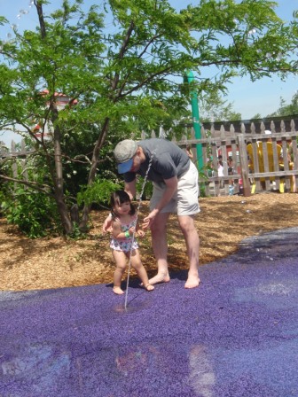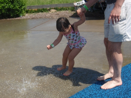 And then it was off to the spray park. At first, Aurora was not sure if she wanted to