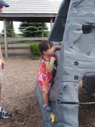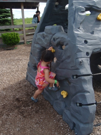 After the spray park, Aurora insisted on checking out the play area nearby.