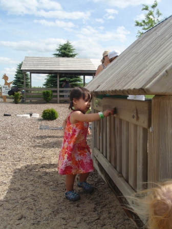 a petting zoo, pony rides, hayrides, multiple playgrounds, and a spray park! At first, Aurora was