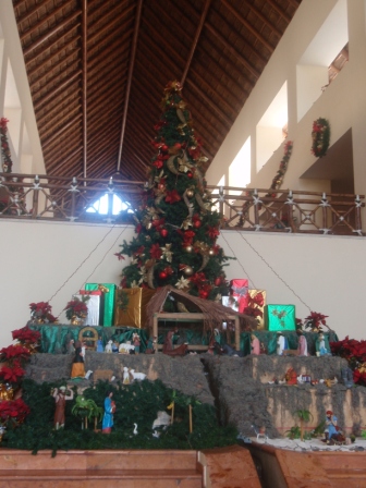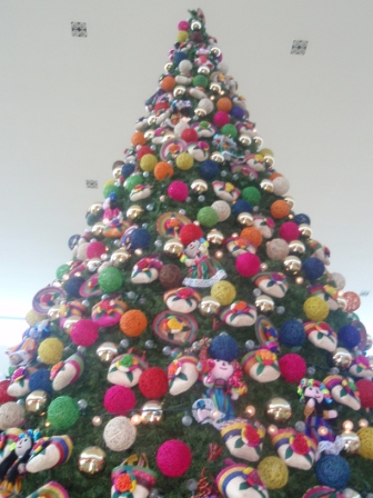 The Cancun airport Christmas tree. The airport was (literally) a mob scene for check in and security.