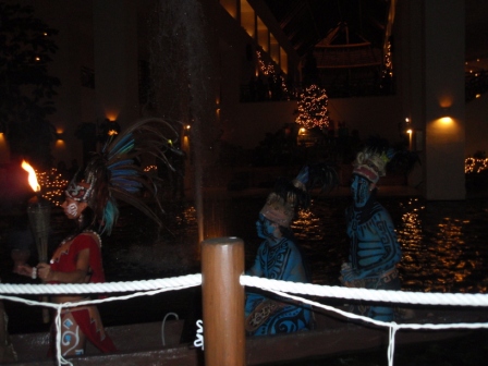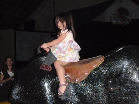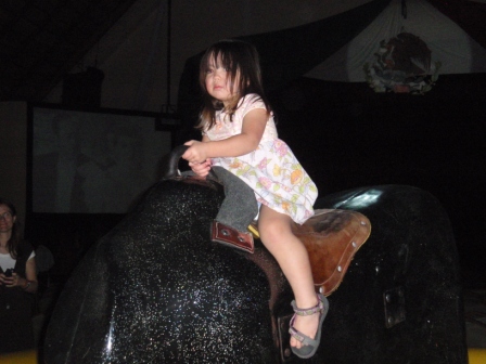 The resort has some sort of fesitval every night. This night, they had a mechanical bull that children were riding.