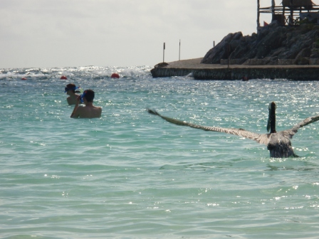 There were lots of fish swimming around in the cove - some even nibbled at Jon's toes (ewww!). And a few pelicans