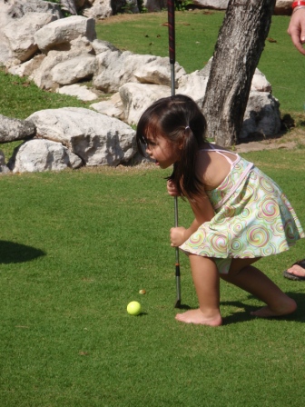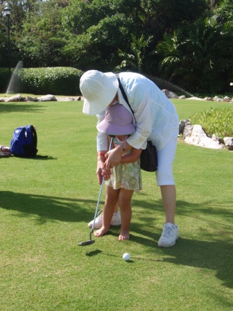 On our way back to the beach, we ran across Wai Po, Wai Gong, Amy, and Daryl on the putting green. Wai Gong
