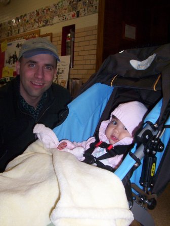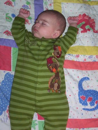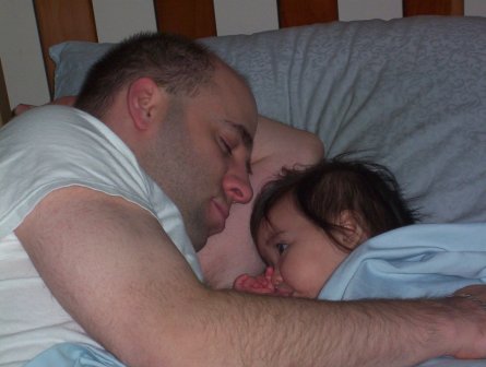 November 15: On weekends, Aurora enjoys taking her morning nap with Jon.