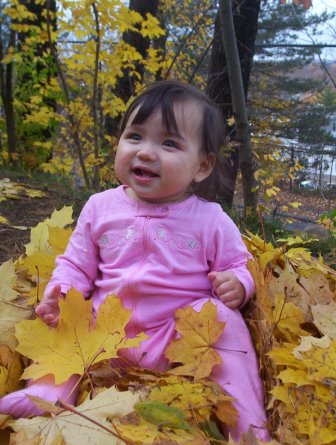 Aurora spends a little time helping Mama rake leaves.