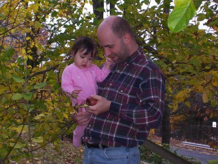 Here she is helping Jon pick the last of the apples.