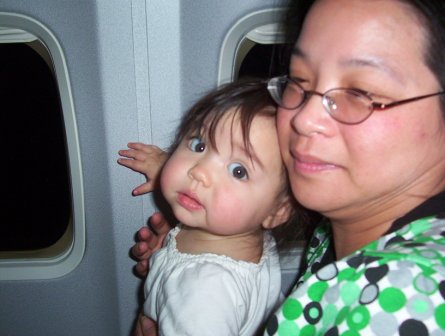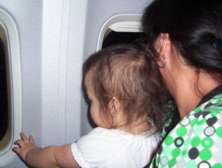November 28: On the plane going home! Aurora liked looking at the lights outside the window.