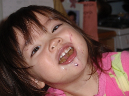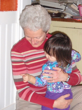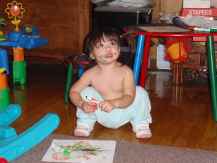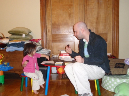 November 11, 2009: How civilized! Aurora and Baba share a brownie and art together in the evening.