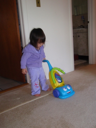 Aurora her own vacuum cleaner, which Aurora enjoyed pushing around the house. Too