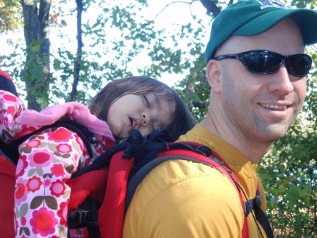 enjoys the walk so much that on the way back to the car she passes out in the kid carrier.