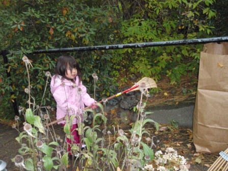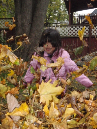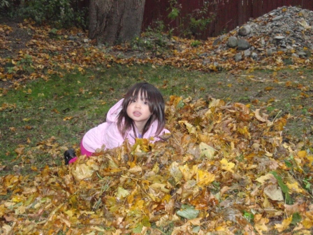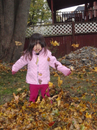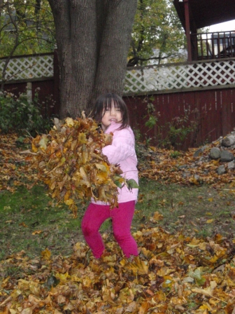 she quickly finds non-traditional ways to "help" us with our big piles of leaves.