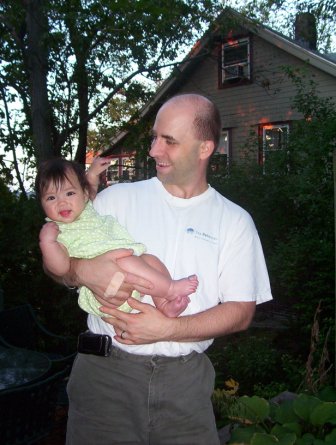 September 8: Aurora and Jon enjoy the weather outside. Notice the bandaid on Jon's knuckle - that's from his chimney cap injury.