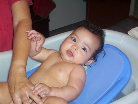 September 13: In Yorktown, Wai Pao gives Aurora a morning bath.