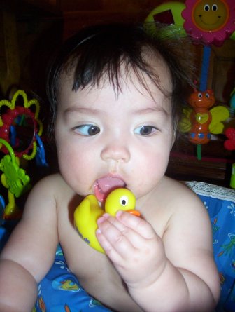 September 16: Aurora finally likes her pacifier - as a chew toy!