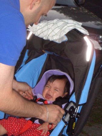 September 17: Aurora tries out her new Bob stroller for the first time (thanks Wai Pao and Wai Gung!). She was a bit upset at first,