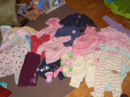 Mama's coworkers chipped in and got Aurora lots of clothing, which came in this giant gift bag. At home, Aurora is